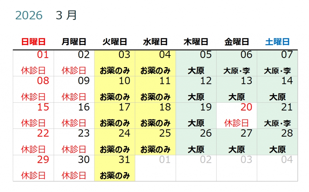| 午前 | / | お薬のお渡し 9:00-12:00 |