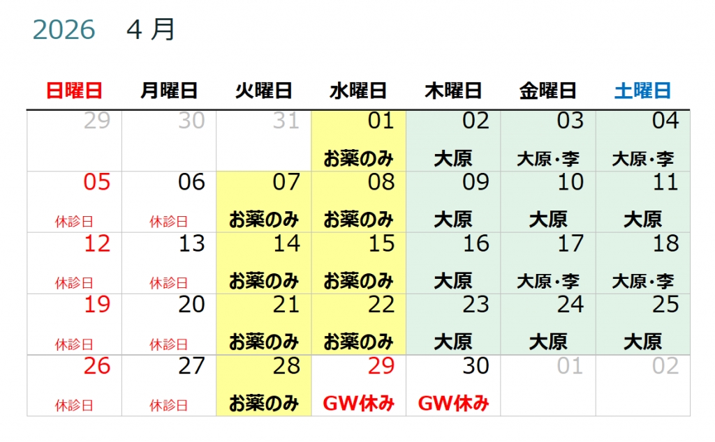 ★4/3(金) 担当・大原先生・李先生(李先生は15:00~)